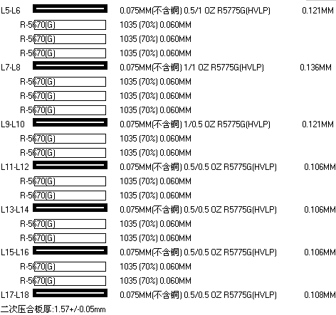 18层阶梯板厚加速卡项目,小批量出货。板厚2.0MM,金手指部分L5-L18层厚度1.6MM.松下R5775G材料。内外层线宽线距3.7mil左右,内层最小空间7mil(孔到内层铜)。L1-18/L5-18层树脂塞孔,10组背钻。